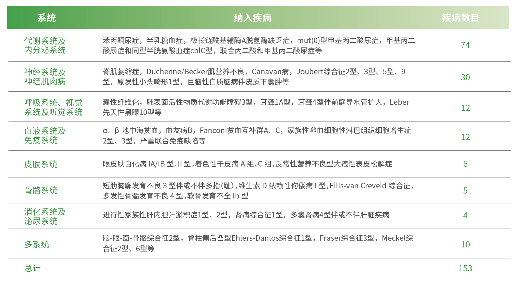 攜心安®擴(kuò)展性攜帶者篩查(標(biāo)準(zhǔn)版)根據(jù)ACMG新近發(fā)布的《隱性遺傳病攜帶者篩查指南》(2021年),結(jié)合亞洲及中國人群攜帶率納入疾病,針對(duì)致病基因攜帶率高的153種單基因隱性遺傳病進(jìn)行篩查,包括常染色體隱性遺傳病和X連鎖隱性遺傳病,科學(xué)、全面、精準(zhǔn)地幫助育齡夫妻盡早了解自身單基因隱性遺傳病致病變異的攜帶情況,提示可能面臨的生育風(fēng)險(xiǎn),以便受檢者尋求科學(xué)的生育指導(dǎo),有效預(yù)防出生缺陷。